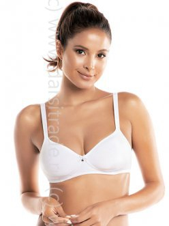 Бюстгальтер с мягкой тканевой чашкой, без косточек. В нижней трети чашки поролоновый вкладыш для лучшей поддержки. Чашка выполнена из двух слоев ткани. Застежка в 2 ряда на 4 позиции. Регулируемые бретели. Изделие выполнено из органического хлопка, собранного вручную, без вредных веществ. Гипоаллергенно.