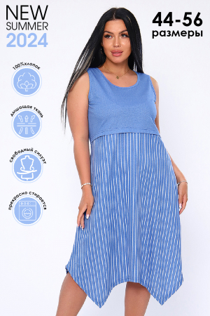 Женский летний сарафан - платье А - силуэта с завышенной талией и небольшой декоративной складкой на кокетке переда с боковыми карманами в шве. Низ изделия выполнен с угловыми вырезами. Сшит из трикотажного полотна, 100%-го хлопка, что позволяет телу дышать и чувствовать себя комфортно в жаркий день. Длина изделия ниже колена. Удобный сарафан, приятный к телу, не стесняет движения. Любителям носить одежду в обтяжку можно брать на размер меньше. Подойдет на любую фигуру, скроет недостатки. Отлично смотрится на беременных. Приятные и стойкие цвета ткани. Широкий размерный ряд 44-56. Для дома и дачи, для отдыха и прогулок, в отпуск, на море. Отличный подарок любимым девушкам и женщинам!