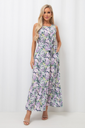 Легкое летнее платье А - силуэта, выполнено из легкой ткани Ниагара. Округлая горловина, по спинке застежка на петлю и пуговицу. В боковых швах функциональные карманы. Низ оформлен притачным воланом. Пояс из основного материала в комплекте.