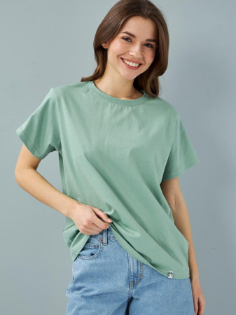 Женская футболка F5, Oversize fit (свободный силуэт), круглый вырез горловины, короткий цельнокроеный рукав. Выполнена из классического трикотажного полотна.