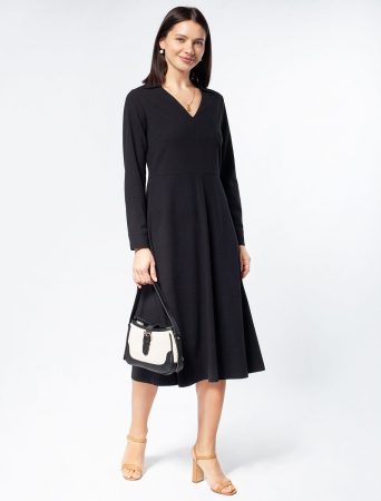 Платье приталенного силуэта и воротником-поло. Выполнено из эластичного крепа. Универсальная модель и трендовый крой в стиле 70-х годов, выгодная инвестиция для повседневного образа, деловой встречи или вечернего выхода. Можно носить с поясом, чтобы дополнительно подчеркнуть талию и А-силуэт.