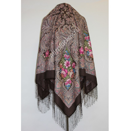 Платок шерстяной с шелковой вязаной бахромой "Чародейка Зима", вид 17, 135х135 см