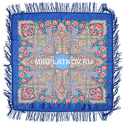 Платок шерстяной с шерстяной бахромой " Камаринская", вид 14, 89x89 см