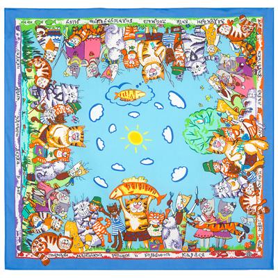 Платок из хлопка "Коты на рыбалке", вид 13, 75х75см