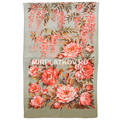 Шарф шелковый (крепдешин), " Райский сад", вид 10, 43х150 см