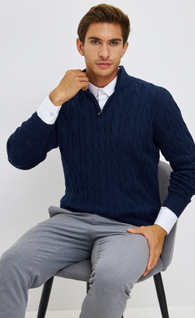 Наименование для сайта: Джемпер мужской с воротником на молнии P221-15-235 тёмно-синий