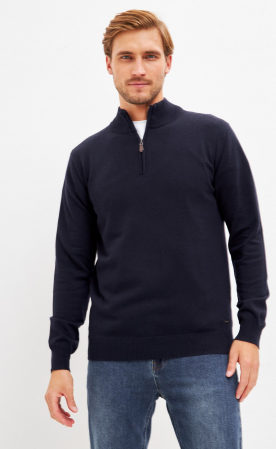Наименование для сайта: Джемпер мужской однотонный с воротом на молнии P321-15201 синий