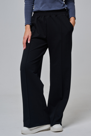 Эти элегантные широкие брюки Urban Flow идеальный выбор для современного городского стиля, сочетающего комфорт и утонченность. Выполненные в классическом черном цвете, они созданы из мягкой, эластичной ткани (смесь хлопка и эластана), которая обеспечивает свободу движений и приятное ощущение на коже, словно вторая кожа.