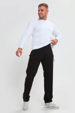 Мужские спортивные брюки прямого кроя, пояс на резинке - средняя посадка. Два боковых кармана на молнии с вставкой из плащевки. Материал держит форму, не скатывается. Подойдут для повседневной носки, для занятий спортом.