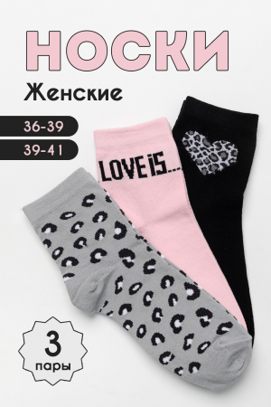 -Набор стильных женских носков. Вставки в модной леопардовой тематике и вывязанная надпись LOVE IS. В упаковке 3 пары. Отличный сувенир на любой праздник - 14 февраля, 8 марта, День рождения и по любому поводу