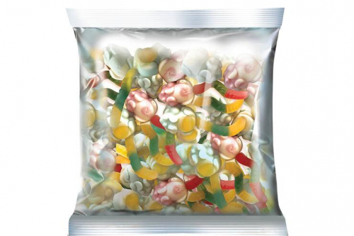 Состав продукта: глюкозно-фруктозный сироп, сахар, желатин, концентрированный яблочный сок, регулятор кислотности лимонная кислота, агент желирующий – пектины, глазирователь – воск карнаубский, концентрированный сок черной моркови, натуральные ароматизаторы, красители- куркумин, синий блестящий FCF. Продукт может содержать диоксид серы.