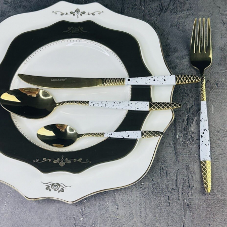 Столовые приборы изготовлены из высококачественной нержавеющей стали, устойчивы к ржавчине, прочны и долговечены, ручка покрыта декоративной эмалью