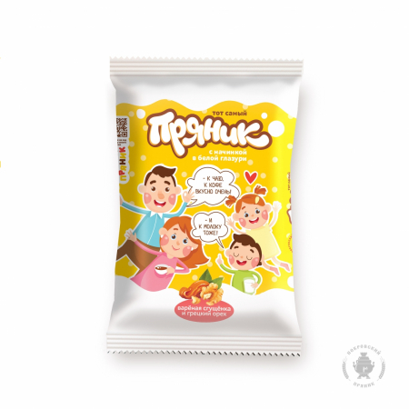 Наша компания рада представить новый продукт - пряники в шоколадной глазури, с начинкой вареное сгущенное молоко и грецкий орех (100 гр) Пряник производится по новой технологии, не имеет жестких краев, а начинка распределена равномерно по всему прянику. Облит белой шоколадной глазурью