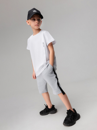 Свободные прямые шорты с брендированной лентой по бокам. детские. Шорты на поясе с эластичной резинкой, карманы с отрезным бочком.