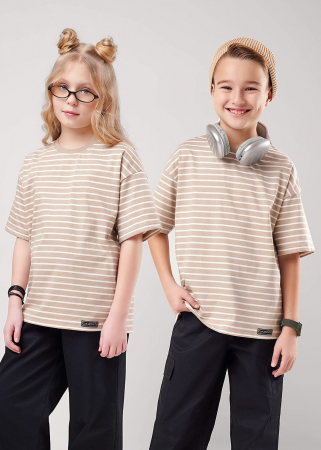 Футболка из хлопкового трикотажного полотна в трендовую набивку - "полоска" прекрасно дополнит твой гардероб. Отличное решение для создания класссного и комфортного образа на каждый день, как для девочек, так и для мальчиков !