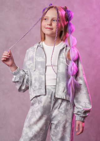 Стильная укороченная толстовка в трендовую набивку на молнии станет отличным дополнением к твоему гардеробу! Модель дополненная фигурными резами, капюшоном, и функциональными карманами. Создавай стильные образы на каждый день и будь в тренде !
