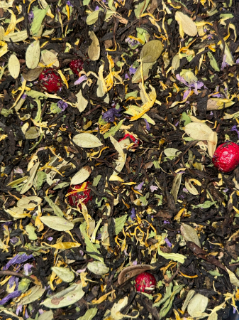 чай черный/зеленый, шишка можжевельника, цветы мальвы, лепестки календулы, рябина, шиповник сибирский, боярышник, вишня, лист толокнянки, брусничный лист