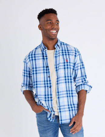 Add comfort and character to your wardrobe with the Long Sleeve Large Plaid Peached Twill Shirt from U.S.?Polo?Assn. Crafted from ultra-soft peached twill, this shirt offers a smooth, brushed finish that feels great against the skin. The oversized plaid pattern delivers a bold, classic look, while the button-down collar and embroidered chest logo elevate the style. Designed in a regular fit, it layers easily over a tee or wears sharp on its own.
