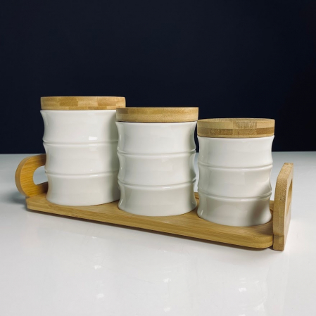 140-169 Набор из 3 банок 320/400/850мл. на подставке BAMBOO в под.уп.(х8)Фарфор (арт. 140-169)