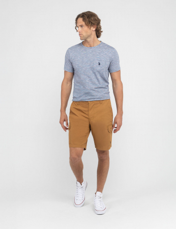 The Ripstop Cargo Shorts from U.S.?Polo?Assn. bring together durable design and modern tailoring—crafted for the style-conscious man who values function. Made from tough ripstop cotton, these shorts feature a mid-rise fit, a 10?" inseam, and a button-and-zip fly. Equipped with two side pockets, two back pockets with button closures, and two cargo flap pockets, they deliver all the storage you need without bulk. The woven-in logo adds subtle utility flair. Model is wearing size?M.