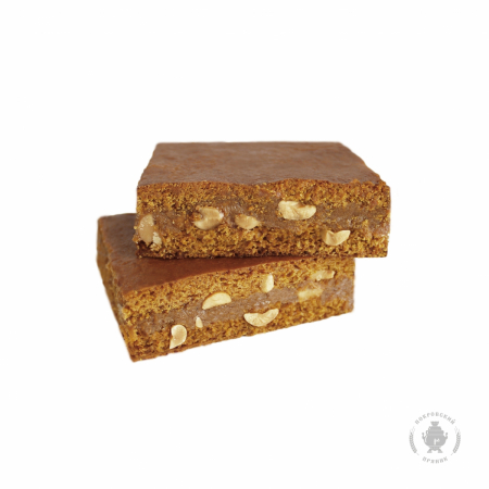 Состав: мука пшеничная в/с, сахар, молоко цельное сгущенное с сахаром, арахис, соль пищевая, разрыхлитель-гидрокарбонат натрия (сода пищевая), пряности-корица, какао-порошок, натуральное вкусоароматическое вещество-ванилин-порошок, масло подсолнечное рафинированное, регулятор кислотности-лимонная кислота, вода питьевая