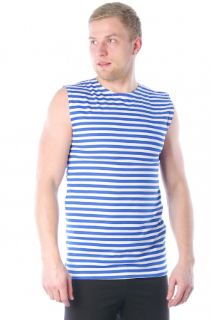 Майка-тельняшка изготавливается из трикотажной кулирной ткани с чередующимися горизонтальными синими и белыми полосками. Полосатые тельняшки стали традицией и весьма популярны в качестве романтического символа моря, морской службы, храбрости и удали.