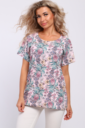 Женская хлопковая футболка. Модель прямого кроя, рукав втачной. Ткань кулирка с набивным рисунком.