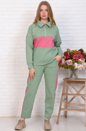Удобный спортивный женский костюм на все случаи жизни! Толстовка прямого кроя, с комбинированной вставкой на полочке, воротник-стойка на короткой молнии. Брюки с широкими лампасами, слегка зауженные книзу, пояс на широкой резинке. Ткань футер с лайкрой - эластичный, приятный к телу и практичный в эксплуатации.