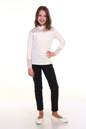 Красивая водолазка для девочки из мягкого хлопка с лайкрой. Кружевная кокетка спереди и манжеты выполнены из кружева высокого качества, что придаёт модели лёгкости.