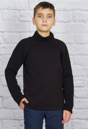 Толстовка выполнена из комбинированных тканей: спинка и полочка из облегчённого футера с начёсом, рукава - мягкий, тёплый стёганный трикотаж капитоний.