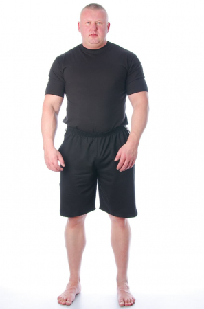 Мужские спортивные шорты больших размеров с удобным широким поясом выполненном на специальной машине. Изделие дополнено втачными карманами и декорировано контрастными лампасами.