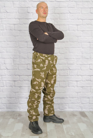 Отличные мужские брюки для летнего активного отдыха из сорочечной лёгкой и дышащей ткани. Модель с высокой посадкой, пояс на резинке, удобные боковые карманы, снизу на резинке - хорошая защита от насекомых.
