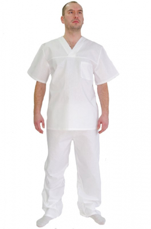 Костюм выполнен из бязи отбеленной ГОСТ, состав: 100% хлопок.