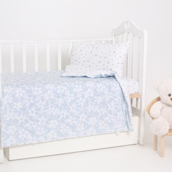 Комплект постельного белья с модным рисунком для самых маленьких детишек. Красивая цветовая гамма будет стильно смотреться в интерьере комнаты. Ткань мягкий и уютный поплин люкс, плотностью 110-115 гр/м2. Размеры комплекта (для стандартной кроватки):