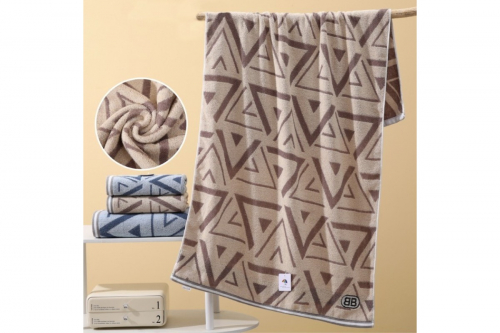 Махровое полотенце с геометрическим рисунком, хорошо впитывает влагу, приятное к телу. Производство Китай.