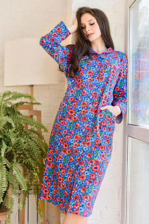 Халат женский запашной с воротником-шаль, притачным поясом по линии талии и двумя боковыми карманами. Рукав втачной, длинный.
