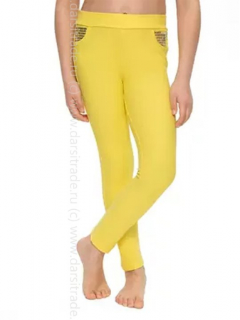 Леггинсы для девочки из трикотажного полотна "джинс", длинные, облегающие, с боковыми швами. По переду изделия - кокетки, с вышивкой пайетками. Верхний срез леггинсов обработан притачным поясом с резинкой внутри.