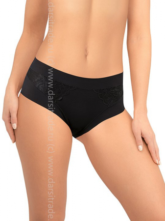 Трусы - макси слип с высокой линией талии, выполнены из мягкой микрофибры. Задняя деталь частично выполнена из кружева с цветочным рисунком. Спереди вырез ножки обработан с использованием технологии "лазерный край". Линия талии проклеена вподгибку. На передней детали декоративные вставки из кружева.