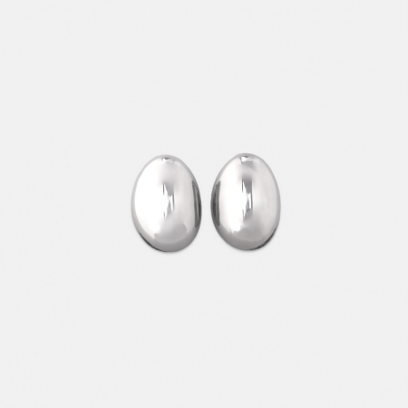 Серебристые серьги овальной формы имеют объёмную текстуру и эффект «живого металла». Они прочные и приятные на ощупь.