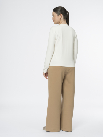 Белый лонгслив – универсальная база для любого образа. Он отлично сочетается с джинсами, брюками из нашей коллекции или под пиджак – будет уместен и в повседневной носке, и в более строгом луке.