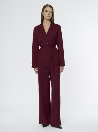 Насыщенный цвет инжира делает брюки универсальной базой для разных сочетаний.