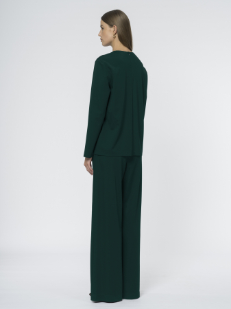 Модель сшита из вискозного трикотажа с добавлением нейлона и эластана — такая ткань прекрасно держит форму, обладает комфортной эластичностью и не требует сложного ухода. Насыщенный хвойный цвет выбрали для создания интересных цветовых сочетаний.
