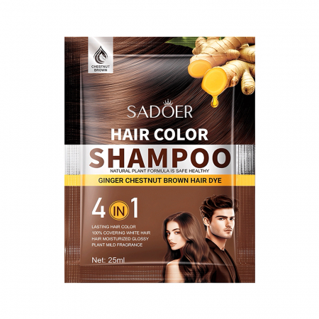 SADOER представляет шампунь-краску с имбирем, цвет каштан. Это средство объединяет мытье и окрашивание волос. Формула, обогащенная растительными экстрактами, мягко воздействует. Шампунь питает и ухаживает за вашими волосами.