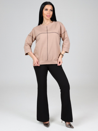 Удобный и стильный женский свитшот, сшит из мягкого трикотажного полотна высокого качества - футер двунитка. Свитшот не стесняет движений, отлично сочетается с брюками и джинсами. Максимально удобен при носке и выгодно сидит на фигуре.