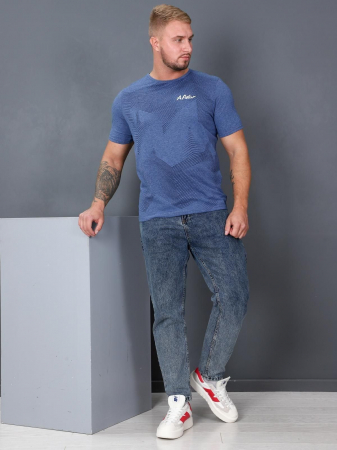 Мужская футболка выполнена их трикотажного полотна "кулирка". Футболка полу прилегающего силуэта, с рукавом, горловина с круглым вырезом, обработанным бейкой. Передняя часть футболки декорирована принтом.