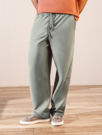 Свободные брюки светло-оливкого цвета с эластичным поясом на резинке и шнуром с металлическим наконечником изготовлены из премиального футера двухнитки. Натуральная ткань, в составе которой хлопок и эластан, отличается дышащими свойствами и мягкостью на ощупь, обеспечивает комфорт и удобство в повседневной носке. Трикотажные брюки сохраняют свой первоначальный вид после многочисленных стирок, что делает их практичными для активного использования. Повседневные брюки дополнены карманами по бокам и одим задним карманом на молнии, что позволяет удобно хранить необходимые мелочи. Внизу расположены затяжки на стопорах, тем самым можно регулировать посадку под индивидуальные предпочтения каждого мужчины.