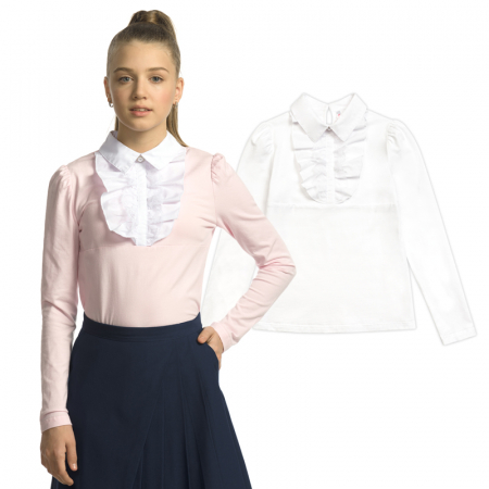 Состав: 93%хлопок 7%эластан, вставка: 60%хлопок 40%полиэстерОписание: Блузка школьная с жабо от Pelican - идеальный выбор для юных модниц, которые ценят комфорт и стиль. Эта нежно-розовая блузка с длинным рукавом, сшитая из мягкого хлопкового трикотажа, подарит девочке ощущение комфорта в течение всего дня. Классический крой и элегантное жабо делают ее подходящей как для повседневной школьной формы, так и для более торжественных мероприятий и на 1 сентября. Блузка украшена рюшами, кружевом и стразами, что придает ей нарядный вид, а пуговичная застежка обеспечивает удобство при надевании. Модель прекрасно сочетается с юбками и брюками, позволяя создавать как строгий, так и праздничный образ. Блузка Pelican - это удачное сочетание качества, стиля и практичности, которое оценят как девочки, так и их родители. Джемпер для девочек полуприлегающего силуэта с воротником из швейной ткани на отрезной стойке, имитирующим воротник рубашки. Перед украшает жабо из швейной ткани и кружева, собранное под вертикальную планку. Декор в виде брошки с жемчужиной и стразами. По спинке застежка на одну пуговицу. Умеренного объема рукав с небольшой сборкой по окату. Большая размерная сетка позволит подобрать хлопковый джемпер, как для юных первоклассниц, так и девочкам подросткам среднего и старшего звена.