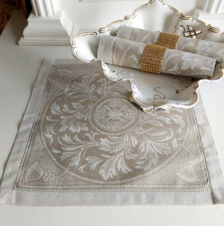 Льняная салфетка бежевого цвета будет отлично сочетаться со скатертью любого тона, а также может использоваться самостоятельно – в роли подстановочной салфетки. На льняном основании будет выгодно смотреться любая сервировка. Купив такие салфетки, вы оцените высокое качество и прочность льна, а также его способность хорошо отстирываться от любых загрязнений.