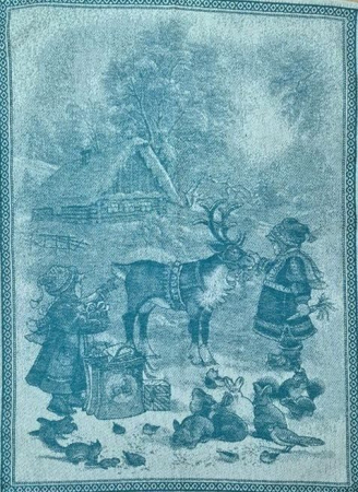 Полотенце Премиум "Девочка и олень"-бирюза 50*70 см. жаккардовое пестротканое с рождественским рисунком. Изготовлено из высококачественного хлопка по классической жаккардовой технологии. Практичное и очень нарядное.Такое полотенце украсит кухню в преддверии новогодних праздников. Очень прочное и мягкое, отлично впитывает влагу, легко стирается, долго служит.