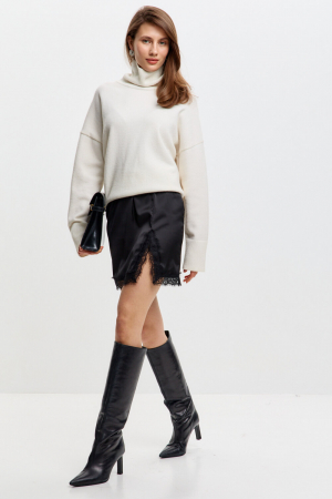 Стильная, атласная юбка с кружевом идеальный выбор для создания элегантного и соблазнительного образа. Мягкий блеск ткани подчёркивает женственность ,а отделка в виде кружева, делает модель особенно утончённой. Эта атласная мини юбка с разрезом, дополнит любой образ и подчеркнёт природную женственность!